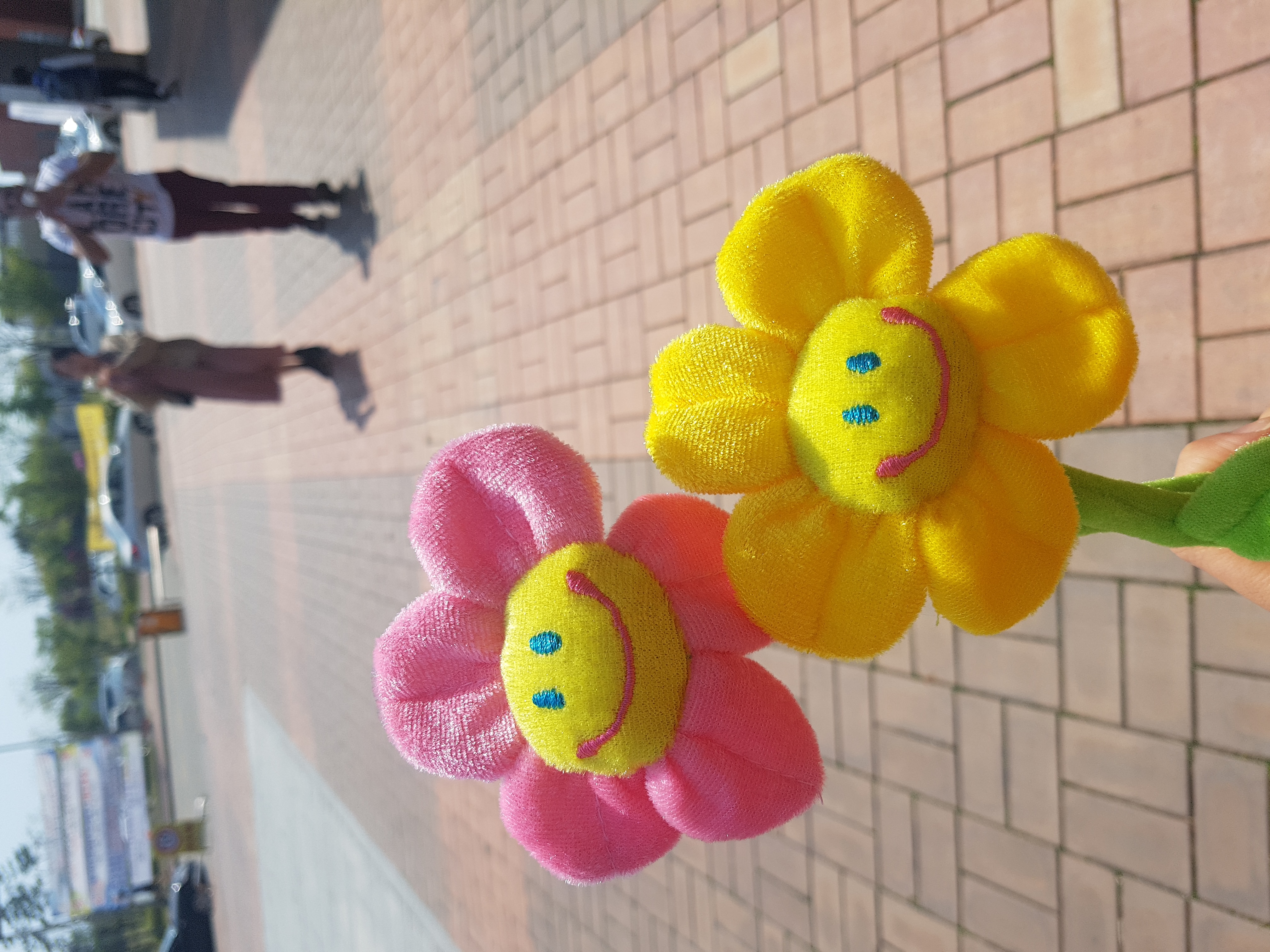 거리 위에 꽃 두 송이가 피었습니다.