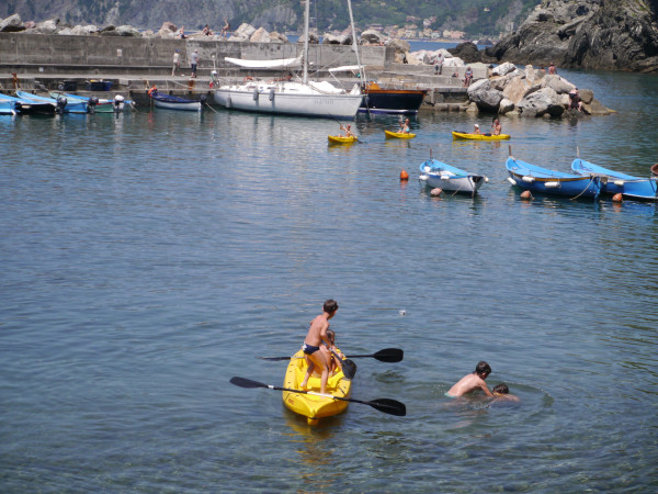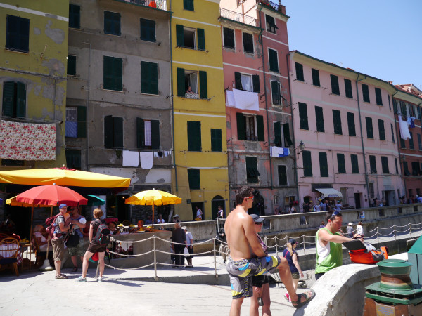 물놀이 하는 아이들과 바라보는 사람들