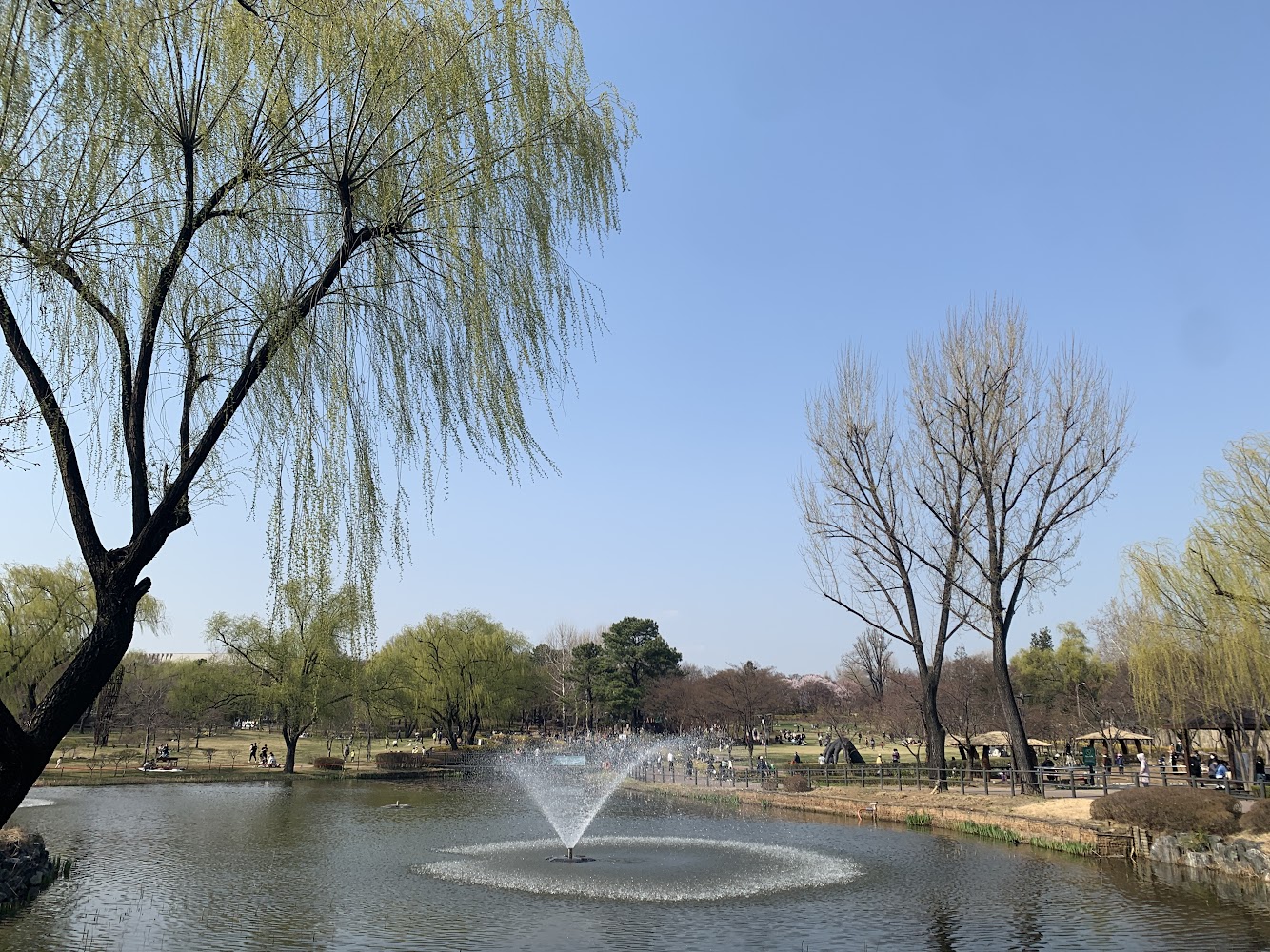 연못 분수 수양버들
