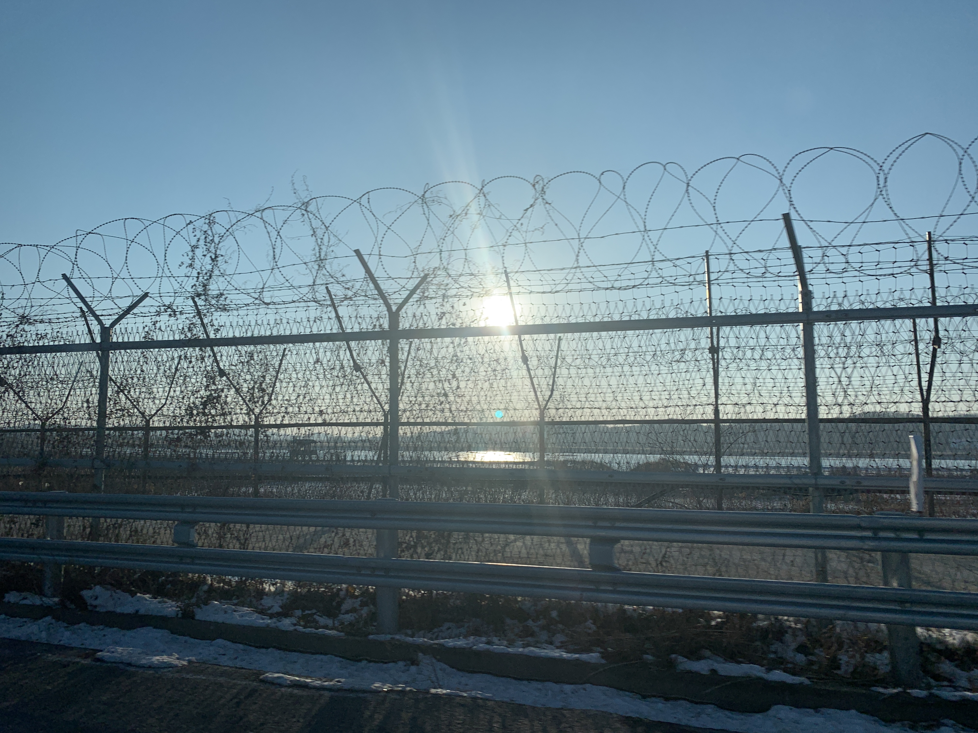 철조망에 걸린 석양