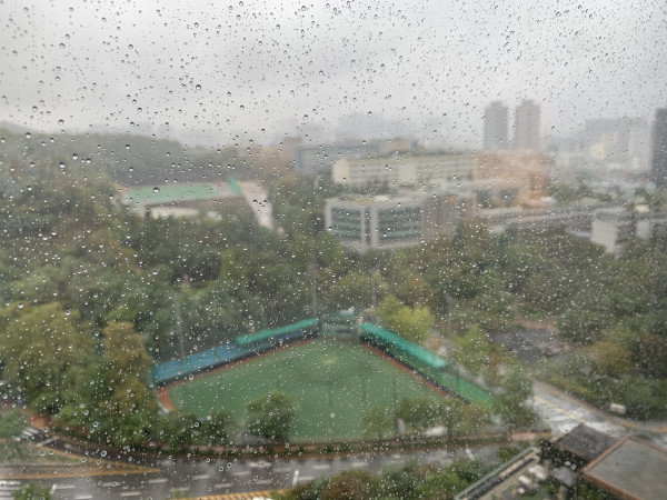 비오는 날 창밖에 보이는 야구장이 왠지 운치가 있네요~ 무슨 야구장이예요?