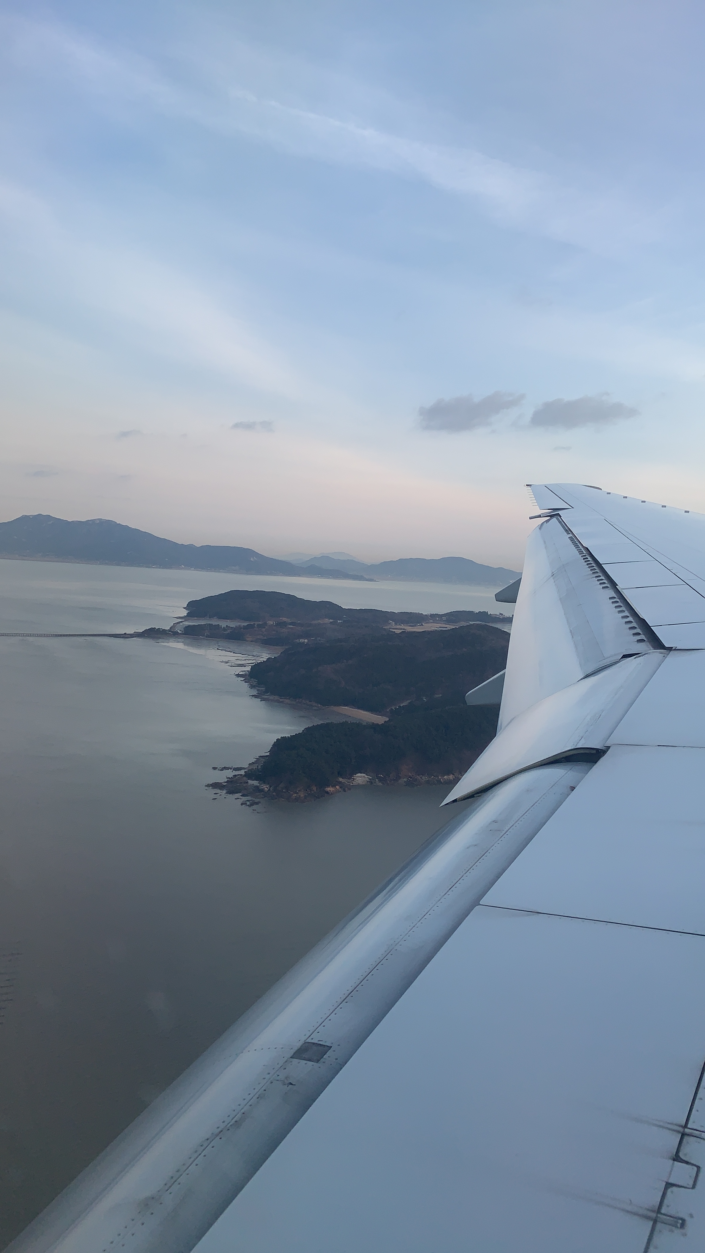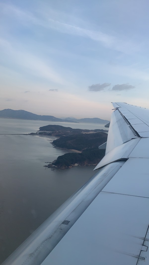섬에 착륙하는 비행기