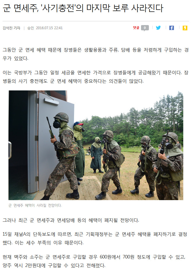 군 면세 혜택 종료