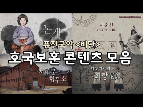 호국보훈 콘텐츠 모음 4종 (이순신, 논개, 독립 운동, 화랑) _퓨전국악비단 비단 0 416 2024.04.17 15:08 https://www.youtube.com/watch?v=nZFz6DtG6Oc + 52 https://www.youtube.com/feeds/videos.xml?channel_id=UCXMN1c6TIGCYHbw3-… + 53 호국보훈 콘텐츠 모음 4종 (이순신, 논개, 독립 운동, 화랑) _퓨전국악비단