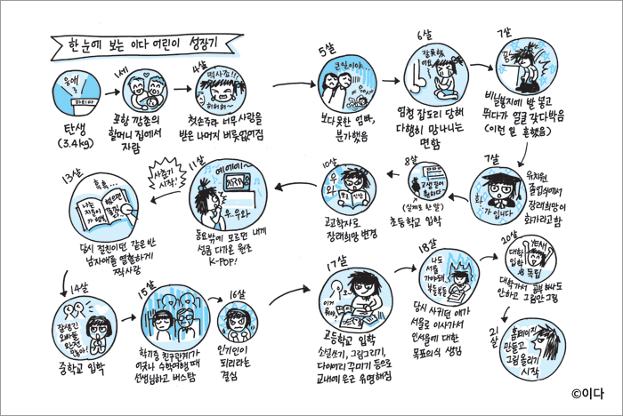 『어린이 탐구 생활』은 그런 고민에 다정한 답을 건네는 책입니다. 일러스트레이터 이다가 계간 〈창비어린이〉에 연재한 만화 「나는 어땠더라?」에 에세이를 더해 엮었습니다. 작가는 자신의 어린 시절을 떠올리며 어제의 어린이로서 오늘의 어린이를 바라봅니다. '○린이'라는 말과 노키즈존에 담긴 무심함부터 기후 위기, 정치 이야기까지. 자칫 무거울 수 있는 주제들을 특유의 유쾌하고 세심한 시선으로 풀어냈습니다.