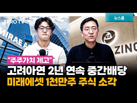 고려아연 2년 연속 중간배당, 미래에셋 1천만주 주식 소각…"주주가치 제고" f. 권순우, 류종은 [삼프로 … 삼프로TV 0 195 2024.08.07 18:01 https://www.youtube.com/watch?v=cNAMhavHPw8 + 25 https://www.youtube.com/feeds/videos.xml?channel_id=UChlv4GSd7OQl3js-j… + 19 고려아연 2년 연속 중간배당, 미래에셋 1천만주 주식 소각…"주주가치 제고" f. 권순우, 류종은 [삼프로 뉴스룸]
