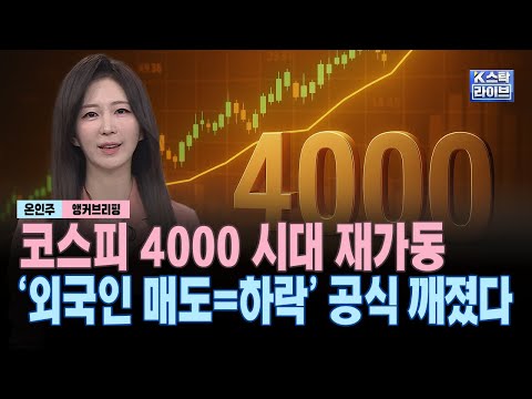 코스피 4000 시대 재가동, '외국인 매도=하락' 공식 깨졌다 한국경제TV 0 16 2025.11.10 15:58 https://www.youtube.com/watch?v=PAJq7xvXqm0 + 1 https://www.youtube.com/feeds/videos.xml?channel_id=UCF8AeLlUbEpKju6v1… + 1 코스피 4000 시대 재가동, '외국인 매도=하락' 공식 깨졌다