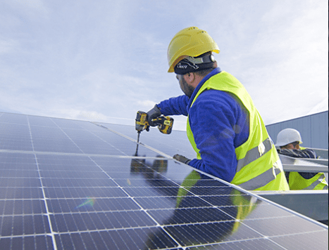 한화솔루션 직원이 태양광 패널을 설치하는 모습 / 사진 한화솔루션 홈페이지 갈무리