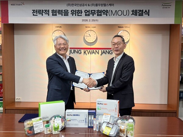 풀무원헬스케어가 KGC인삼공사와 헬스케어 분야 공동사업 추진을 위한 포괄적 업무협약을 체결했다. 양사는 구독 채널을 활용한 혈당관리 프로그램 패키지 판매를 비롯해 고객 데이터를 상호 연계한 시니어 시장 공동 분석에 나선다. 특히 풀무원의 개인 맞춤형 식이 플랫폼 '디자인밀'은 KGC인삼공사의 홍삼 원료를 활용한 시니어 타깃 프리미엄 건강 식단을 개발하고, 혈당 관리 특화 건강기능식품을 더한 큐레이션 프로그램도 론칭할 계획이다.