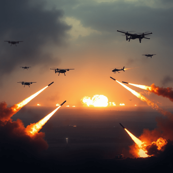 미국과 이란 간 전쟁을 형상화한 이미지. 미사일과 공격론 드론 등이 비행하는 모습이다. / 사진 뤼튼에서 생성 미국과 이란 간 전쟁을 형상화한 이미지. 미사일과 공격론 드론 등이 비행하는 모습이다. / 사진 뤼튼에서 생성