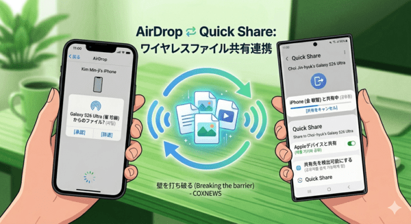 サムスン電子は23日、モバイル向けプレスサイトを通じて、ギャラクシーS26シリーズを皮切りにクイックシェア(Quick Share)にエアドロップ(AirDrop)連携機能を導入すると発表した。提供は韓国を起点に、欧州、香港、日本、中南米、北米、東南アジア、台湾などへ順次拡大される予定だ。
