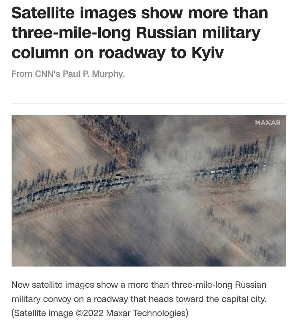 위성에 찍힌 키예프 방향 러시아군 행렬