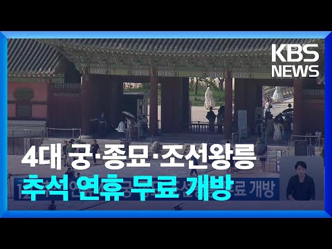 추석 연휴 4대 궁·종묘·조선왕릉 무료 개방 / KBS 2024.09.10. KBSNews 0 36 2024.09.10 13:03 https://www.youtube.com/watch?v=DVwRWlBtXjg + 7 https://www.youtube.com/feeds/videos.xml?channel_id=UCcQTRi69dsVYHN3ex… + 2 추석 연휴 4대 궁·종묘·조선왕릉 무료 개방 / KBS 2024.09.10.
