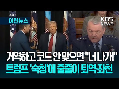 [이런뉴스] ‘어긋나면 숙청’…“퇴역·좌천 미국 장성, 트럼프 2기에 20여 명” / KBS 2025.11.08. KBSNews 0 6 11.08 16:23 https://www.youtube.com/watch?v=c8K-3QR_pzE + 1 https://www.youtube.com/feeds/videos.xml?channel_id=UCcQTRi69dsVYHN3ex… + 1 [이런뉴스] ‘어긋나면 숙청’…“퇴역·좌천 미국 장성, 트럼프 2기에 20여 명” / KBS 2025.11.08.