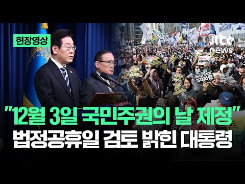 [현장영상] "12월 3일 국민주권의 날 제정"…법정공휴일 검토 밝힌 대통령 / JTBC News JTBCNews 0 11 2025.12.03 09:33 https://www.youtube.com/watch?v=EsdG4sEBnQ8 + 1 https://www.youtube.com/feeds/videos.xml?channel_id=UCsU-I-vHLiaMfV_ce… + 1 [현장영상] "12월 3일 국민주권의 날 제정"…법정공휴일 검토 밝힌 대통령 / JTBC News