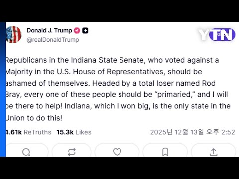 트럼프 "인디애나 선거구 조정 반대한 공화당 의원들 교체해야" / YTN YTN 0 2 8시간전 https://www.youtube.com/watch?v=agTBrnuLc1U + 0 https://www.youtube.com/feeds/videos.xml?channel_id=UChlgI3UHCOnwUGzWz… + 0 트럼프 "인디애나 선거구 조정 반대한 공화당 의원들 교체해야" / YTN