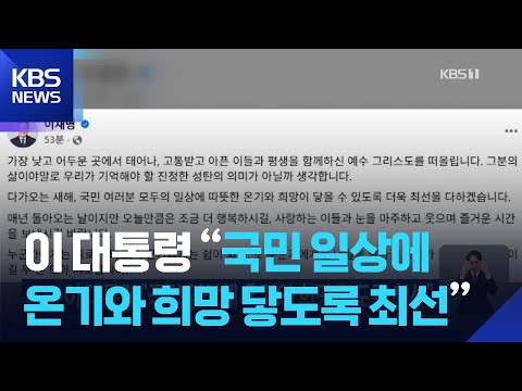 이 대통령 “국민 일상에 온기와 희망 닿도록 최선” / KBS 2025.12.25. KBSNews 0 1 12.25 12:29 https://www.youtube.com/watch?v=sZ_xtj08eok + 0 https://www.youtube.com/feeds/videos.xml?channel_id=UCcQTRi69dsVYHN3ex… + 0 이 대통령 “국민 일상에 온기와 희망 닿도록 최선” / KBS 2025.12.25.