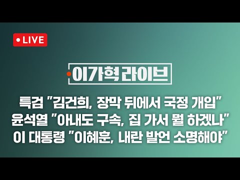 [LIVE/JTBC 뉴스] 이가혁 라이브 – "김건희, 장막 뒤에서 국정개입" 특검의 일침 / 정치권 뒤흔든… JTBCNews 0 10 2025.12.29 15:17 https://www.youtube.com/watch?v=6NH8fU6o_eI + 6 https://www.youtube.com/feeds/videos.xml?channel_id=UCsU-I-vHLiaMfV_ce… + 4 [LIVE/JTBC 뉴스] 이가혁 라이브 – "김건희, 장막 뒤에서 국정개입" 특검의 일침 / 정치권 뒤흔든 이혜훈 파격 인사 (25.12.29)