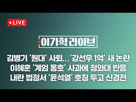[LIVE/JTBC 뉴스] 이가혁 라이브 – 김병기 원내대표직 사퇴…'녹음 파일' 새 논란 / 이혜훈 '계엄 옹호' 사과…청와… JTBCNews 0 0 12.30 15:12 https://www.youtube.com/watch?v=E9LKnT-JuUg + 0 https://www.youtube.com/feeds/videos.xml?channel_id=UCsU-I-vHLiaMfV_ce… + 0 [LIVE/JTBC 뉴스] 이가혁 라이브 – 김병기 원내대표직 사퇴…'녹음 파일' 새 논란 / 이혜훈 '계엄 옹호' 사과…청와대 "국민 판단 몫" (25.12.30)