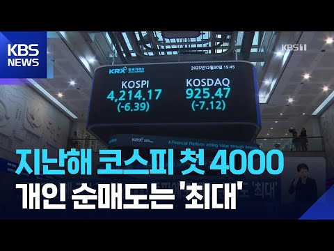 지난해 코스피 첫 4,000 돌파에도 개인 순매도 ‘최대’ / KBS 2026.01.01. KBSNews 0 2 01.01 12:13 https://www.youtube.com/watch?v=tpUWBTvXICM + 0 https://www.youtube.com/feeds/videos.xml?channel_id=UCcQTRi69dsVYHN3ex… + 0 지난해 코스피 첫 4,000 돌파에도 개인 순매도 ‘최대’ / KBS 2026.01.01.