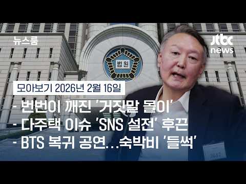 [뉴스룸 모아보기] 법원 판단 쌓인 '결정적 증언들'…윤 측, 끝까지 "사실무근" (26.2.16) / JT… JTBCNews 0 10 02.16 23:28 https://www.youtube.com/watch?v=hsDivohBY58 + 1 https://www.youtube.com/feeds/videos.xml?channel_id=UCsU-I-vHLiaMfV_ce… + 1 [뉴스룸 모아보기] 법원 판단 쌓인 '결정적 증언들'…윤 측, 끝까지 "사실무근" (26.2.16) / JTBC News