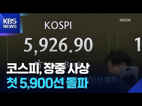 코스피, 장중 사상 첫 5,900선 돌파 / KBS 2026.02.23. KBSNews 0 8 02.23 12:52 https://www.youtube.com/watch?v=loMbY58MtKo + 0 https://www.youtube.com/feeds/videos.xml?channel_id=UCcQTRi69dsVYHN3ex… + 0 코스피, 장중 사상 첫 5,900선 돌파 / KBS 2026.02.23.