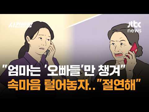 "엄마는 '오빠들'만 챙겨" 속마음 털어놓자…"절연해" / JTBC 사건반장 JTBCNews 0 11 03.03 21:55 https://www.youtube.com/watch?v=OJpLiloBx7E + 0 https://www.youtube.com/feeds/videos.xml?channel_id=UCsU-I-vHLiaMfV_ce… + 0 "엄마는 '오빠들'만 챙겨" 속마음 털어놓자…"절연해" / JTBC 사건반장