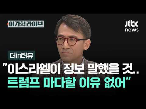 [더in터뷰] "이스라엘, 암살 정보 말했을 것…트럼프 마다할 이유 없어" / JTBC 이가혁 라이브 JTBCNews 0 8 03.06 18:44 https://www.youtube.com/watch?v=SFMyw_A0-Mw + 0 https://www.youtube.com/feeds/videos.xml?channel_id=UCsU-I-vHLiaMfV_ce… + 0 [더in터뷰] "이스라엘, 암살 정보 말했을 것…트럼프 마다할 이유 없어" / JTBC 이가혁 라이브