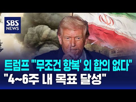 트럼프 "'무조건 항복' 외 합의 없다"…"4~6주 내 목표 달성" / SBS SBS뉴스 0 9 03.07 11:11 https://www.youtube.com/watch?v=_albXe5qHoI + 0 https://www.youtube.com/feeds/videos.xml?channel_id=UCkinYTS9IHqOEwR1S… + 0 트럼프 "'무조건 항복' 외 합의 없다"…"4~6주 내 목표 달성" / SBS