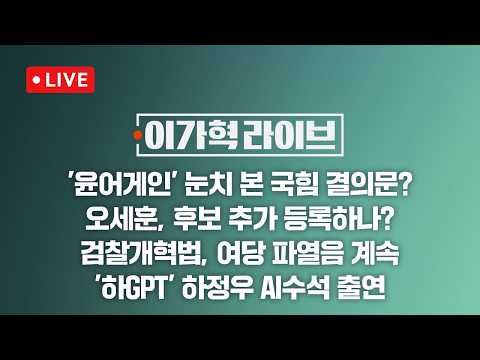 [LIVE/JTBC 뉴스] 이가혁 라이브 – '윤어게인' 눈치 본 국힘 결의문? / 오세훈, 후보 추가 등록하나? / '하GP… JTBCNews 0 1 03.10 13:48 https://www.youtube.com/watch?v=hwAREUNFS0U + 0 https://www.youtube.com/feeds/videos.xml?channel_id=UCsU-I-vHLiaMfV_ce… + 0 [LIVE/JTBC 뉴스] 이가혁 라이브 – '윤어게인' 눈치 본 국힘 결의문? / 오세훈, 후보 추가 등록하나? / '하GPT' 하정우 AI수석 출연 (26.3.10)