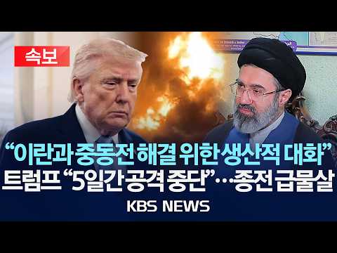 [????속보] 트럼프 "이란과 중동 전쟁 해결 위한 생산적 대화...이란 발전소·에너지 시설 5일간 공격 중단 지시… KBSNews 0 7 03.23 20:18 https://www.youtube.com/watch?v=AMi6PqGvyjM + 0 https://www.youtube.com/feeds/videos.xml?channel_id=UCcQTRi69dsVYHN3ex… + 0 [????속보] 트럼프 "이란과 중동 전쟁 해결 위한 생산적 대화...이란 발전소·에너지 시설 5일간 공격 중단 지시"/2026년 3월 23일(월)/KBS