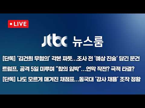 [LIVE/JTBC 뉴스] 뉴스룸 – [단독] '김건희 무혐의' 각본 짜듯…조사 전 '예상 진술' 담긴 문건 / 공격 5일 미… JTBCNews 0 1 03.24 10:35 https://www.youtube.com/watch?v=Ku-OvwWHd1A + 0 https://www.youtube.com/feeds/videos.xml?channel_id=UCsU-I-vHLiaMfV_ce… + 0 [LIVE/JTBC 뉴스] 뉴스룸 – [단독] '김건희 무혐의' 각본 짜듯…조사 전 '예상 진술' 담긴 문건 / 공격 5일 미루며 "합의 임박"…트럼프 속내는? (26.3.24)