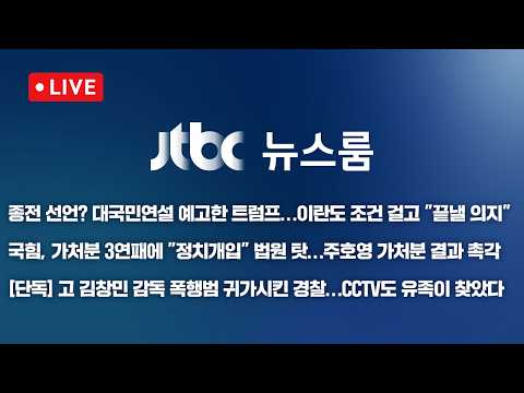 [LIVE/JTBC 뉴스] 뉴스룸 – 트럼프 "곧 떠난다" 대국민연설서 종전선언? / 가처분 3연패 법원 탓… JTBCNews 0 1 04.01 13:33 https://www.youtube.com/watch?v=GZHZKTZlJYk + 0 https://www.youtube.com/feeds/videos.xml?channel_id=UCsU-I-vHLiaMfV_ce… + 0 [LIVE/JTBC 뉴스] 뉴스룸 – 트럼프 "곧 떠난다" 대국민연설서 종전선언? / 가처분 3연패 법원 탓하는 국힘 / [단독] 김창민 폭행범 현장 체포 안한 경찰(26.4.1)