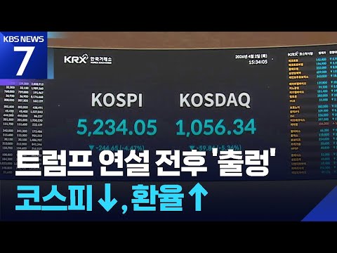 트럼프 발언에 코스피 급락 전환…환율 18.4원 올라 / KBS 2026.04.02. KBSNews 0 24 04.02 19:16 https://www.youtube.com/watch?v=HvfvbLp2q7w + 2 https://www.youtube.com/feeds/videos.xml?channel_id=UCcQTRi69dsVYHN3ex… + 2 트럼프 발언에 코스피 급락 전환…환율 18.4원 올라 / KBS 2026.04.02.