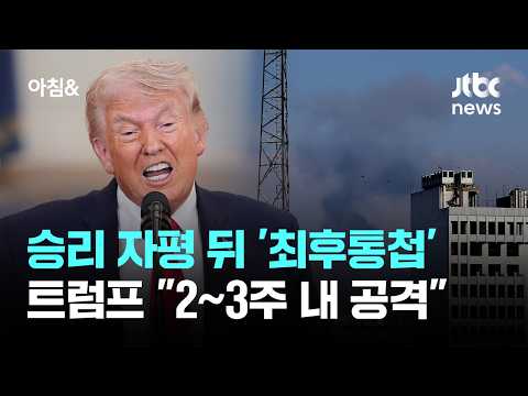 승리 자평 뒤 '최후통첩'…트럼프 "2~3주 내 대대적 공격" / JTBC 아침& JTBCNews 0 10 04.03 08:29 https://www.youtube.com/watch?v=SwdJqgYXZak + 0 https://www.youtube.com/feeds/videos.xml?channel_id=UCsU-I-vHLiaMfV_ce… + 0 승리 자평 뒤 '최후통첩'…트럼프 "2~3주 내 대대적 공격" / JTBC 아침&