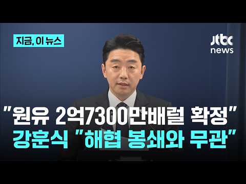 중동 출장 다녀온 강훈식 "원유 2억7300만 배럴·나프타 210만 톤 추가 확보"|지금 이 뉴스 JTBCNews 0 6 04.15 16:10 https://www.youtube.com/watch?v=pAYUz06vFJw + 1 https://www.youtube.com/feeds/videos.xml?channel_id=UCsU-I-vHLiaMfV_ce… + 1 중동 출장 다녀온 강훈식 "원유 2억7300만 배럴·나프타 210만 톤 추가 확보"|지금 이 뉴스