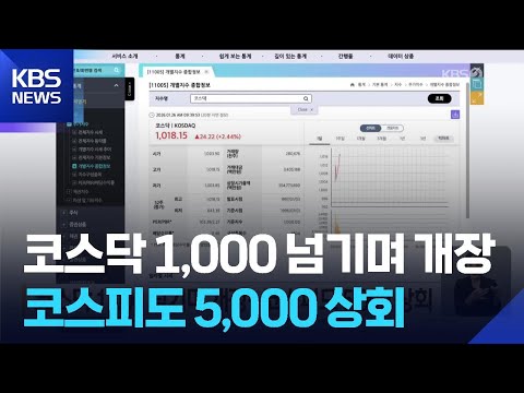 코스닥 1,000 넘기며 개장…코스피도 5,000 상회 / KBS 2026.01.26. KBSNews 0 1 01.26 10:27 https://www.youtube.com/watch?v=lsJVvDNR5UQ + 0 https://www.youtube.com/feeds/videos.xml?channel_id=UCcQTRi69dsVYHN3ex… + 0 코스닥 1,000 넘기며 개장…코스피도 5,000 상회 / KBS 2026.01.26.