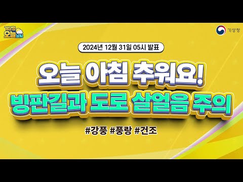 [오늘날씨] 오늘 아침 추워요! 빙판길과 도로 살얼음 주의. 12월 31일 5시 기준 기상청 0 281 2024.12.31 07:20 https://www.youtube.com/watch?v=EVoQVv5MNBc + 21 https://www.youtube.com/feeds/videos.xml?channel_id=UCI110BywhJpYRC1XY… + 16 [오늘날씨] 오늘 아침 추워요! 빙판길과 도로 살얼음 주의. 12월 31일 5시 기준