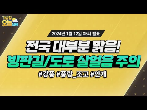 [오늘날씨] 빙판길과 도로 살얼음 주의하세요! 1월 12일 5시 기준 기상청 0 582 2024.01.12 07:00 https://www.youtube.com/watch?v=0s-OQsDs_mo + 117 https://www.youtube.com/feeds/videos.xml?channel_id=UCI110BywhJpYRC1XY… + 86 [오늘날씨] 빙판길과 도로 살얼음 주의하세요! 1월 12일 5시 기준