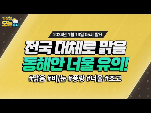 [오늘날씨] 전국 대체로 맑음, 동해안 너울 유의! 1월 13일 5시 기준 기상청 0 495 2024.01.13 07:00 https://www.youtube.com/watch?v=uxdnMvpH33E + 77 https://www.youtube.com/feeds/videos.xml?channel_id=UCI110BywhJpYRC1XY… + 70 [오늘날씨] 전국 대체로 맑음, 동해안 너울 유의! 1월 13일 5시 기준