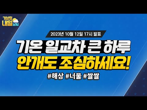 [내일날씨] 기온 일교차 큰 하루, 안개도 조심하세요! 10월 12일 17시 기준 기상청 0 720 2023.10.12 19:10 https://www.youtube.com/watch?v=NFKlqfv8qa4 + 82 https://www.youtube.com/feeds/videos.xml?channel_id=UCI110BywhJpYRC1XY… + 83 [내일날씨] 기온 일교차 큰 하루, 안개도 조심하세요! 10월 12일 17시 기준