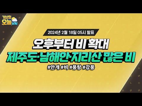 [오늘날씨] 오후부터 비 점차 확대, 제주도·남해안·지리산 많은 비. 2월 18일 5시 기준 기상청 0 694 2024.02.18 07:00 https://www.youtube.com/watch?v=oRmBqbfBLzo + 95 https://www.youtube.com/feeds/videos.xml?channel_id=UCI110BywhJpYRC1XY… + 95 [오늘날씨] 오후부터 비 점차 확대, 제주도·남해안·지리산 많은 비. 2월 18일 5시 기준