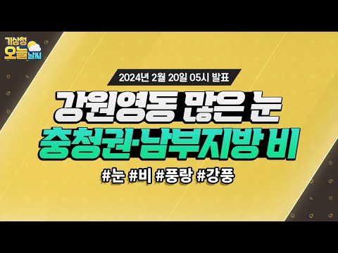 [오늘날씨] 강원영동 중심 많은 눈, 충청권·남부지방 비. 2월 20일 5시 기준 기상청 0 558 2024.02.20 07:00 https://www.youtube.com/watch?v=urfuj-i4uM4 + 87 https://www.youtube.com/feeds/videos.xml?channel_id=UCI110BywhJpYRC1XY… + 68 [오늘날씨] 강원영동 중심 많은 눈, 충청권·남부지방 비. 2월 20일 5시 기준