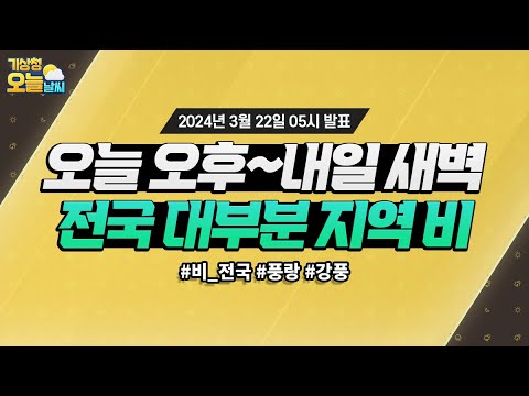 [오늘날씨] 오늘 오후부터 내일 새벽 사이 전국 대부분 지역에 비가 와요. 3월 22일 5시 기준 기상청 0 599 2024.03.22 07:12 https://www.youtube.com/watch?v=Rm7dyEbt51o + 76 https://www.youtube.com/feeds/videos.xml?channel_id=UCI110BywhJpYRC1XY… + 66 [오늘날씨] 오늘 오후부터 내일 새벽 사이 전국 대부분 지역에 비가 와요. 3월 22일 5시 기준