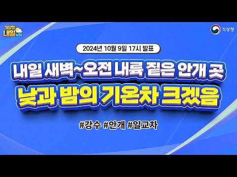 [내일날씨] 내일 새벽~오전 내륙 짙은 안개 곳, 낮과 밤의 기온 차 크겠음. 10월 9일 17시 기준 기상청 0 268 2024.10.09 18:48 https://www.youtube.com/watch?v=qZe97-Pv1mE + 30 https://www.youtube.com/feeds/videos.xml?channel_id=UCI110BywhJpYRC1XY… + 20 [내일날씨] 내일 새벽~오전 내륙 짙은 안개 곳, 낮과 밤의 기온 차 크겠음. 10월 9일 17시 기준
