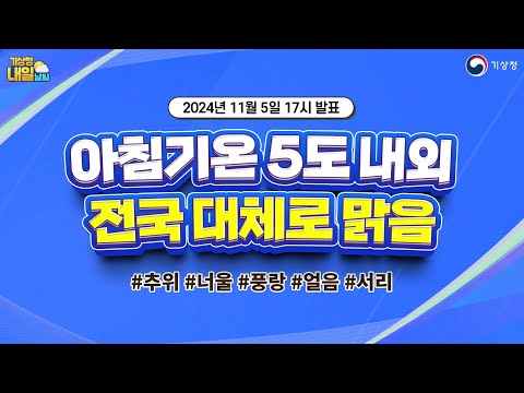 [내일날씨] 아침기온 5도 내외, 전국 대체로 맑음. 11월 5일 17시 기준 기상청 0 258 2024.11.05 18:01 https://www.youtube.com/watch?v=JDwqLUmDLmE + 19 https://www.youtube.com/feeds/videos.xml?channel_id=UCI110BywhJpYRC1XY… + 15 [내일날씨] 아침기온 5도 내외, 전국 대체로 맑음. 11월 5일 17시 기준