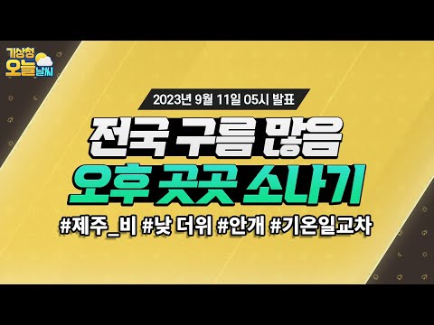 [오늘날씨] 전국 구름많고 오후에 곳곳 소나기 내려요. 9월 11일 5시 기준 기상청 0 758 2023.09.11 07:00 https://www.youtube.com/watch?v=nM1OKZUeXOo + 86 https://www.youtube.com/feeds/videos.xml?channel_id=UCI110BywhJpYRC1XY… + 85 [오늘날씨] 전국 구름많고 오후에 곳곳 소나기 내려요. 9월 11일 5시 기준