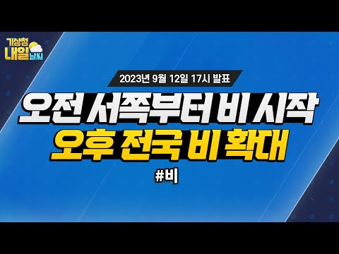 [내일날씨] 오전 서쪽부터 비 시작, 오후 전국 비 확대. 9월 12일 17시 기준 기상청 0 891 2023.09.12 17:50 https://www.youtube.com/watch?v=HjS69K8iM48 + 106 https://www.youtube.com/feeds/videos.xml?channel_id=UCI110BywhJpYRC1XY… + 114 [내일날씨] 오전 서쪽부터 비 시작, 오후 전국 비 확대. 9월 12일 17시 기준