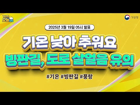 [오늘날씨] 기온 낮아 추워요, 빙판길, 도로살얼음 유의. 3월 19일 5시 기준 기상청 0 580 03.19 07:01 https://www.youtube.com/watch?v=7N75bEbFwuQ + 51 https://www.youtube.com/feeds/videos.xml?channel_id=UCI110BywhJpYRC1XY… + 46 [오늘날씨] 기온 낮아 추워요, 빙판길, 도로살얼음 유의. 3월 19일 5시 기준