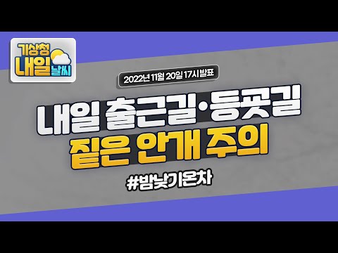 [내일날씨] 내일 출근길·등굣길, 짙은 안개 주의. 11월 20일 17시 기준 기상청 0 1608 2022.11.20 18:02 https://www.youtube.com/watch?v=H8HZnf5oldc + 148 https://www.youtube.com/feeds/videos.xml?channel_id=UCI110BywhJpYRC1XY… + 150 [내일날씨] 내일 출근길·등굣길, 짙은 안개 주의. 11월 20일 17시 기준